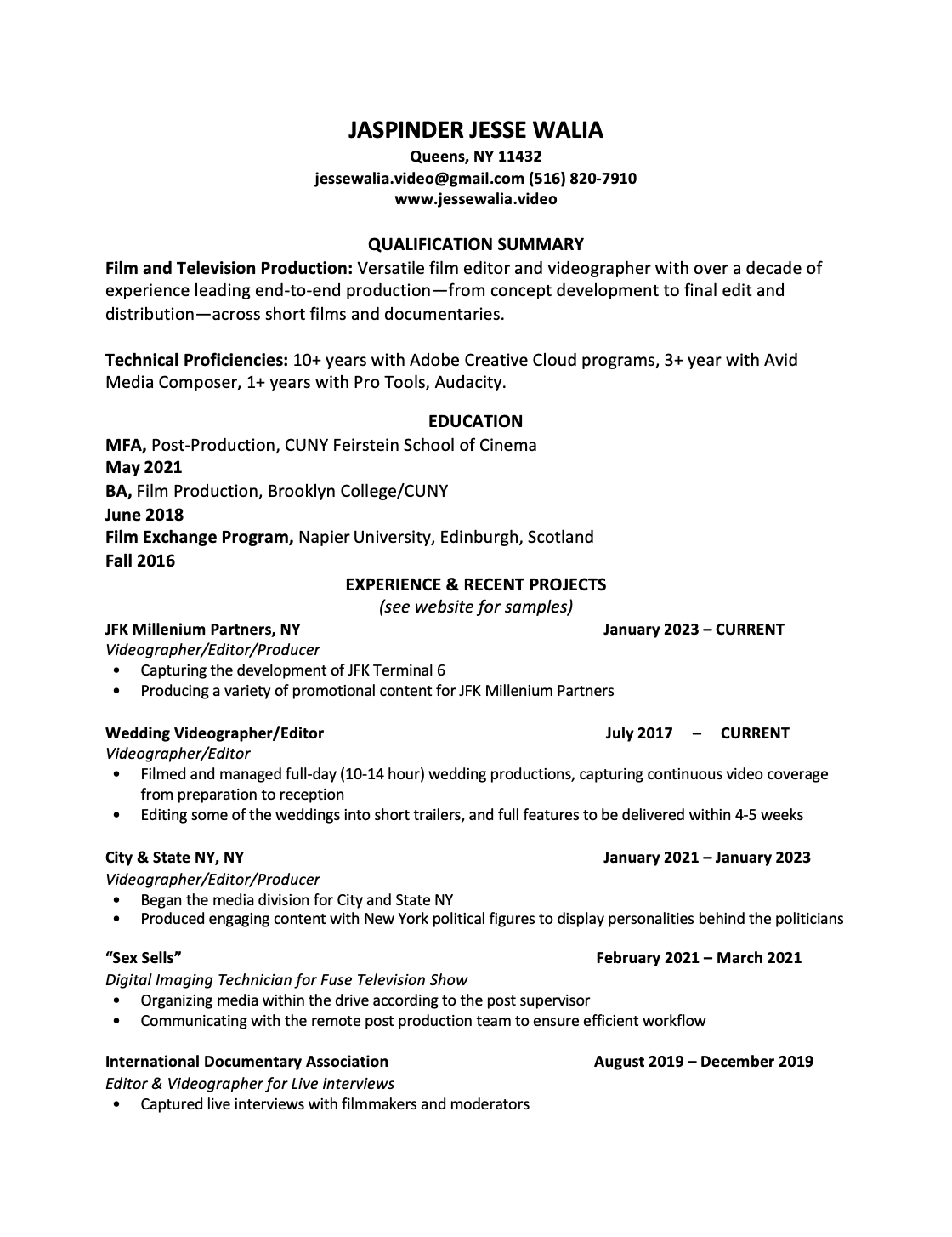 Jesse Walia - Creative Director / Video Editor